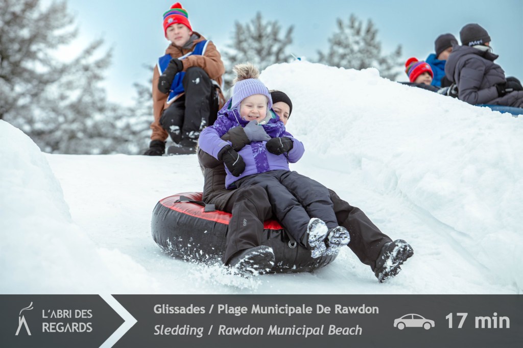 Le site de la plage municipale est accessible pour la glissade, les patinoires de hockey et de patin libre, ainsi que le sentier glacé sur le lac Rawdon dès que les conditions météorologiques le permettent.
