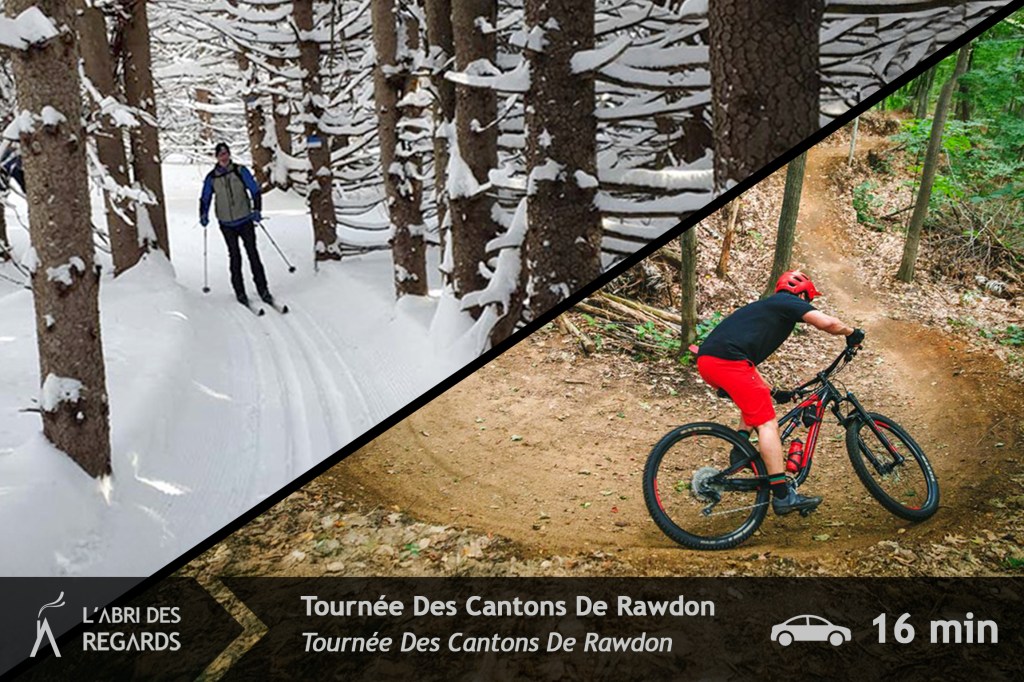 La Tournée des Cantons de Rawdon, c’est : 17 km de sentiers pour le fatbike, 35 km pour le vélo de montagne, 45 km de parcours en forêt pour les amateurs de randonnée pédestre, 18 km de sentiers de raquette de niveaux facile à difficile, 13 km de ski de fond tracés et 35 km de ski nordique non tracés.